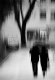 Spacerująca para intrygująco kontestuje z bielą pod nogami, a wyraziste drzewo z ginącymi w rozmyciach detalami butynku
